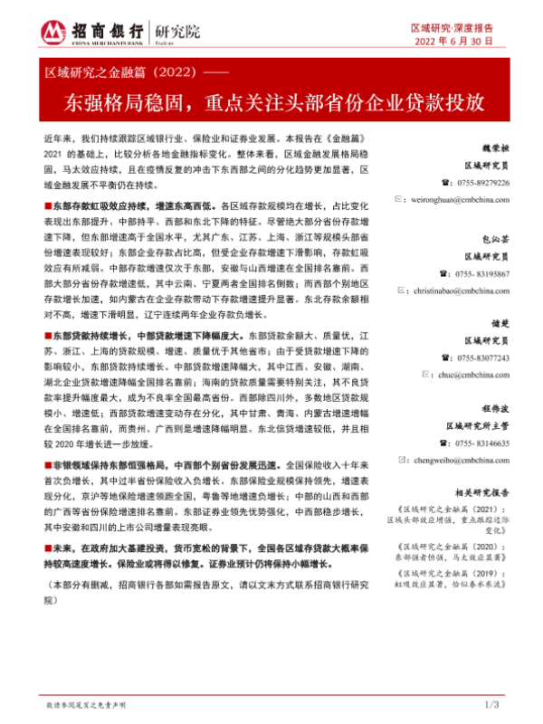 【招商银行】【20220630】区域研究之金融篇(2022):东强格局稳固,重点关注头部省份企业贷款投放-25页 行业研究