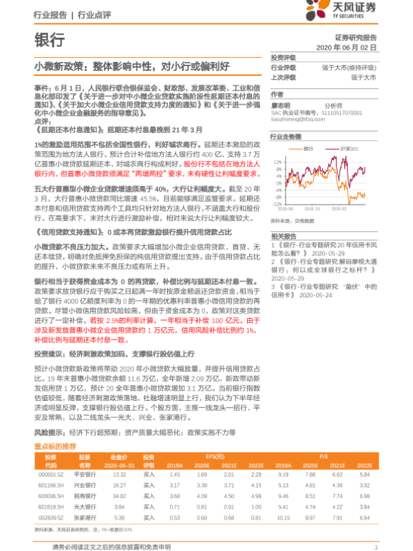 【天风证券】【20200602】小微新政策:整体影响中性,对小行或偏利好-5页 行业研究