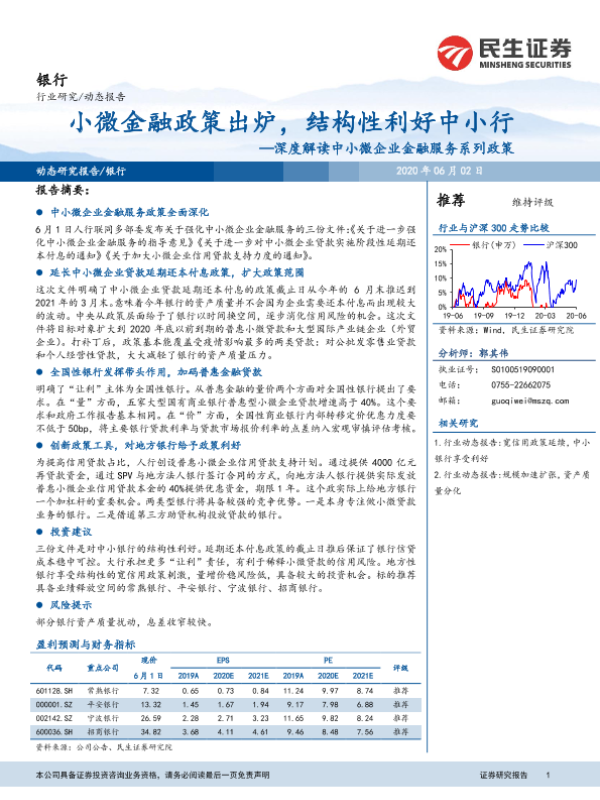 【民生证券】【20200602】银行深度解读中小微企业金融服务系列政策:小微金融政策出炉,结构性利好中小行-9页 行业研究