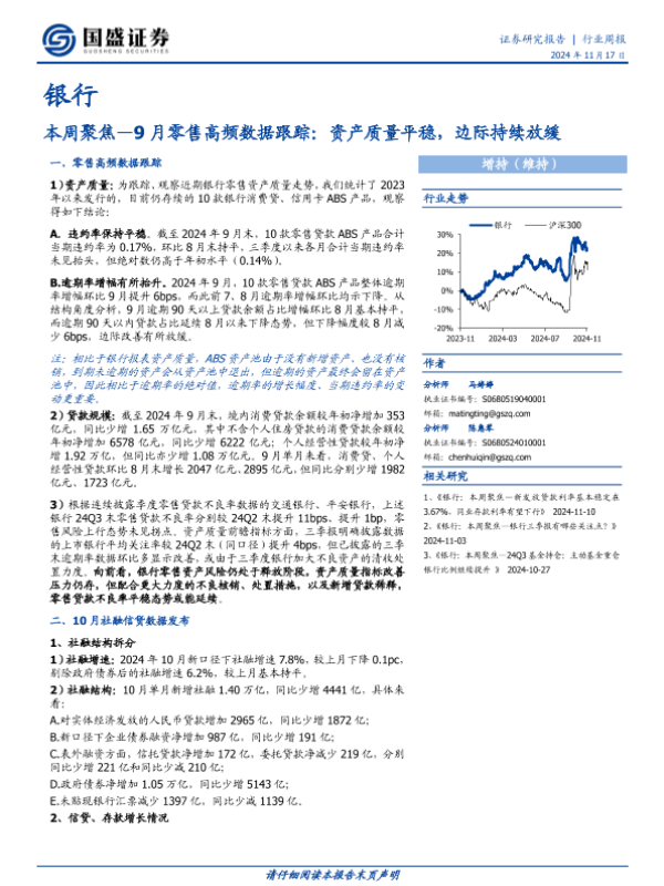 【国盛证券】【20241117】9月零售高频数据跟踪,资产质量平稳,边际持续放缓-13页 行业研究