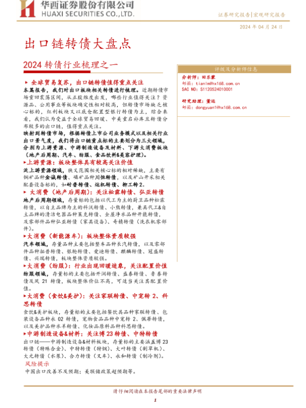 【华西证券】【20240424】2024转债行业梳理之一:出口链转债大盘点-16页 行业研究