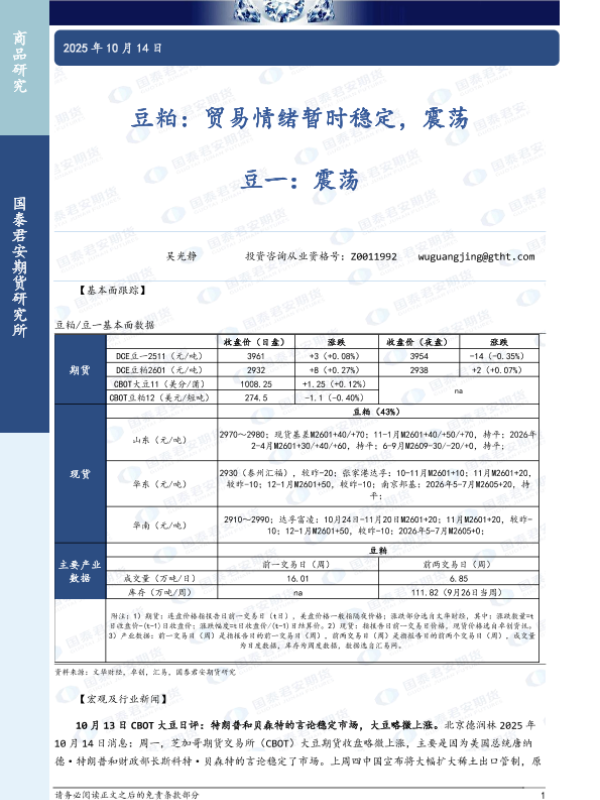 【国泰君安期货】【202510】商品研究—豆粕/豆一-3页 证券期货研究报告