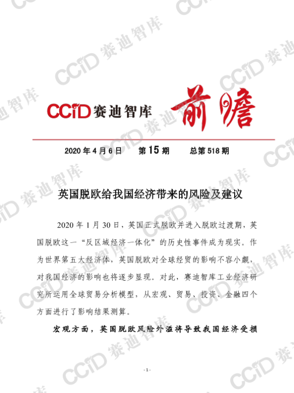 【赛迪智库工业经济研究所】【20200406】英国脱欧给我国经济带来的风险及建议-7页 行业研究