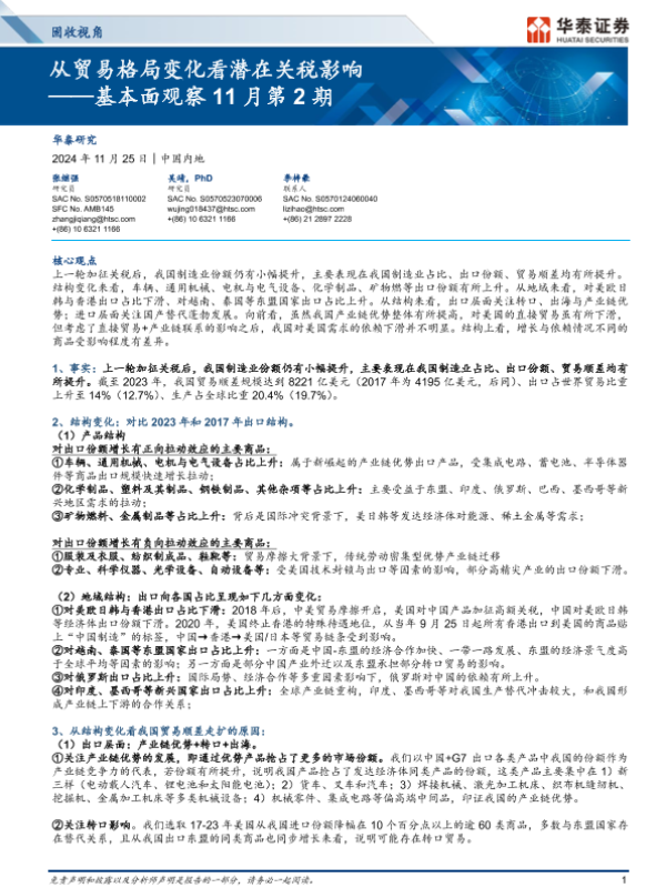 【华泰证券】【20241125】基本面观察11月第2期:从贸易格局变化看潜在关税影响-10页 行业研究