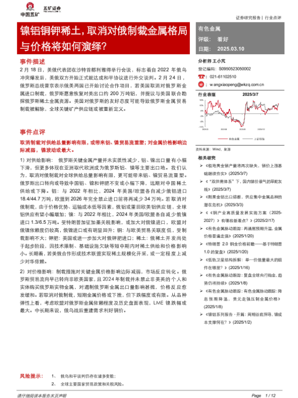 【五矿证券】【20250310】镍铝铜钾稀土,取消对俄制裁金属格局与价格将如何演绎?-12页 行业研究