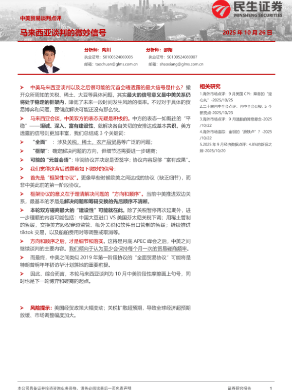 【民生证券】【202510】中美贸易谈判点评:马来西亚谈判的微妙信号-3页 证券期货研究报告