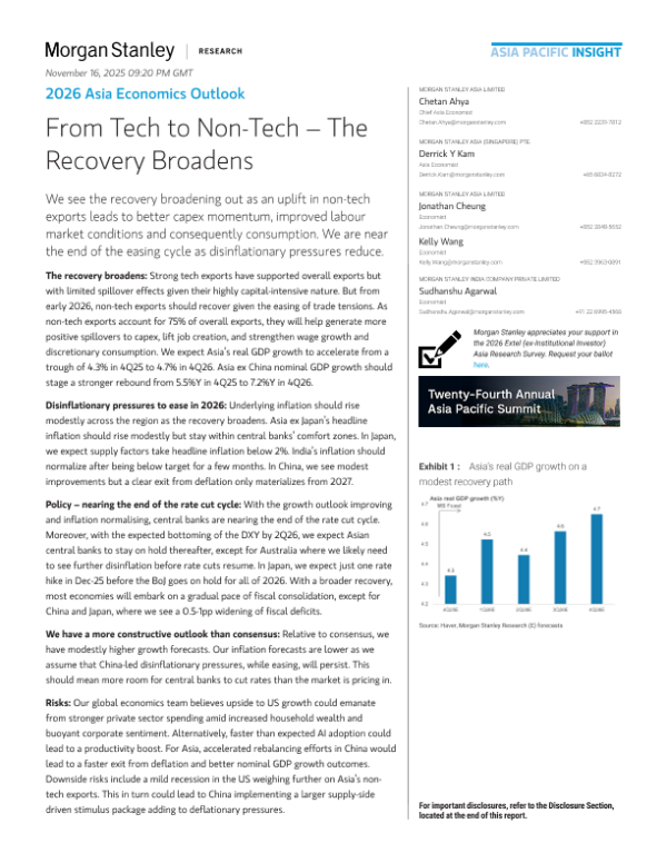 【Morgan Stanley】【2025】2026 Asia Economics Outlook From Tech to Non-Tech-The Recovery Broadens-19页 宏观策略