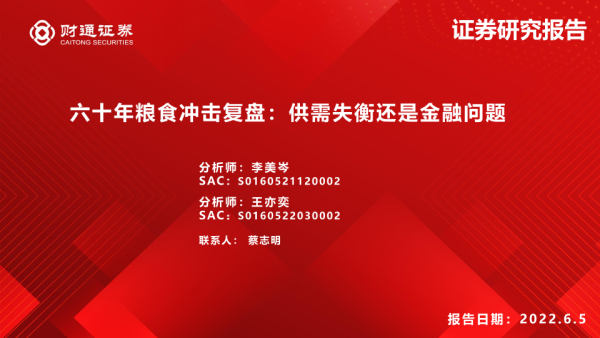 【财通证券】【20220605】六十年粮食冲击复盘:供需失衡还是金融问题-19页 行业研究
