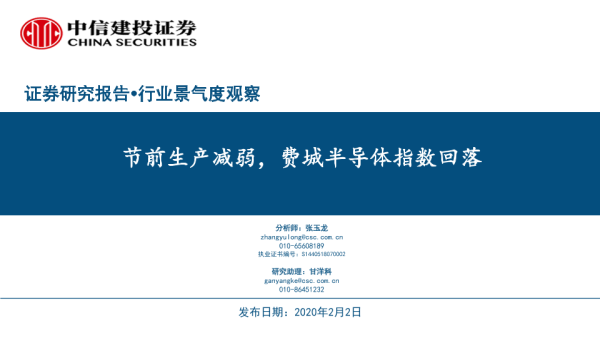 【中信建投证券】【20200202】行业景气度观察:节前生产减弱,费城半导体指数回落-39页 行业研究