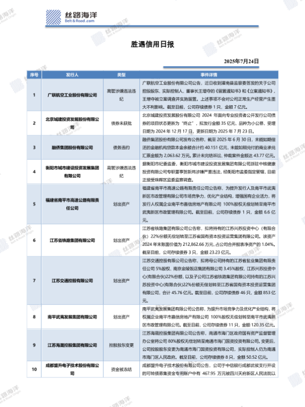 【丝路海洋(北京)科技有限公司】【20250724】胜遇信用日报-3页 证券期货研究报告