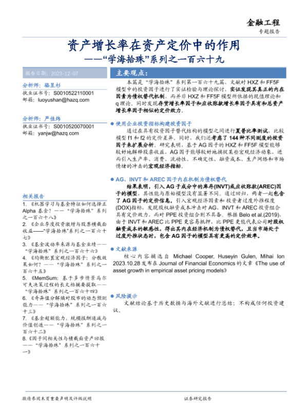 【华安证券】【20231207】资产增长率在资产定价中的作用-24页 行业研究