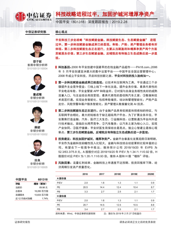 【中信证券】【20190228】中国平安-601318.SH-深度跟踪报告:科技战略进程过半,加固护城河增厚净资产-37页 行业研究