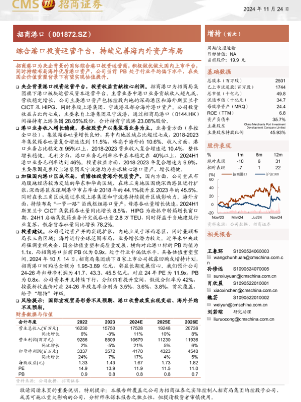 【海通证券】【20241124】招商港口(001872)综合港口投资运营平台,持续完善海内外资产布局-23页 行业研究