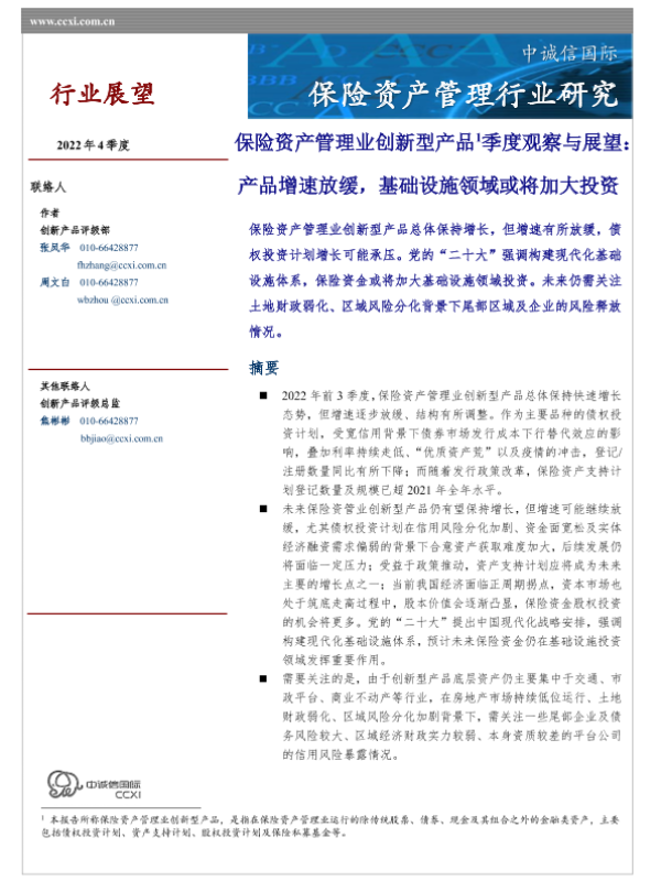 【中诚信国际】【20221001】中诚信-保险资产管理业创新型产品季度观察与展望(2022年4季度)-9页 行业研究