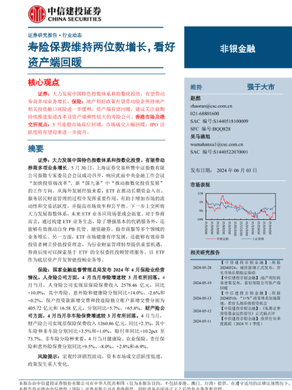 【中信建投证券】【20240603】非银金融行业动态:寿险保费维持两位数增长,看好资产端回暖-25页 行业研究