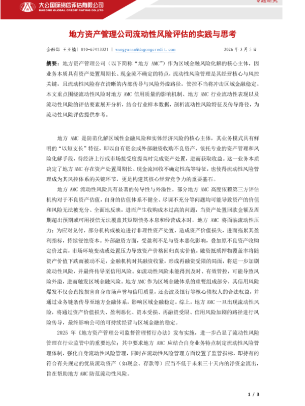 【大公国际】【202603】地方资产管理公司流动性风险评估的实践与思考-3页 行业研究