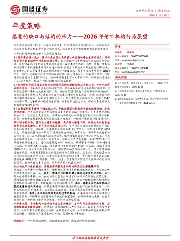 【国盛证券】【202512】总量的缺口与结构的压力——2026年债市机构行为展望-17页 证券期货研究报告