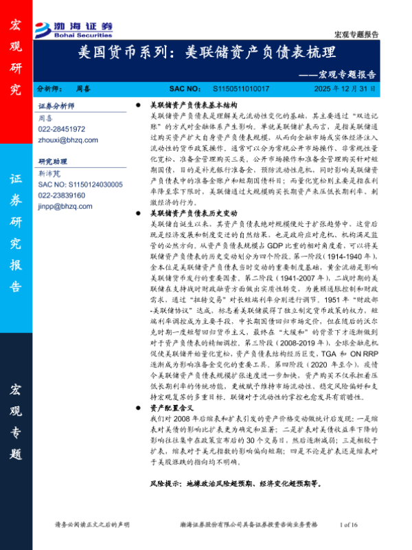 【渤海证券】【202512】美国货币系列:美联储资产负债表梳理-16页 证券期货研究报告