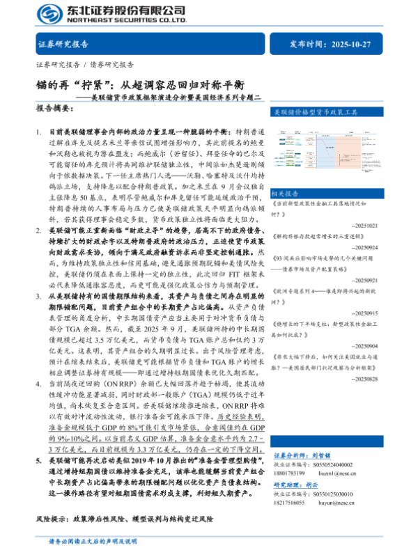 【东北证券】【202510】锚的再“拧紧”:从超调容忍回归对称平衡——美联储货币政策框架演进分析暨美国经济系列专题二-33页 证券期货研究报告