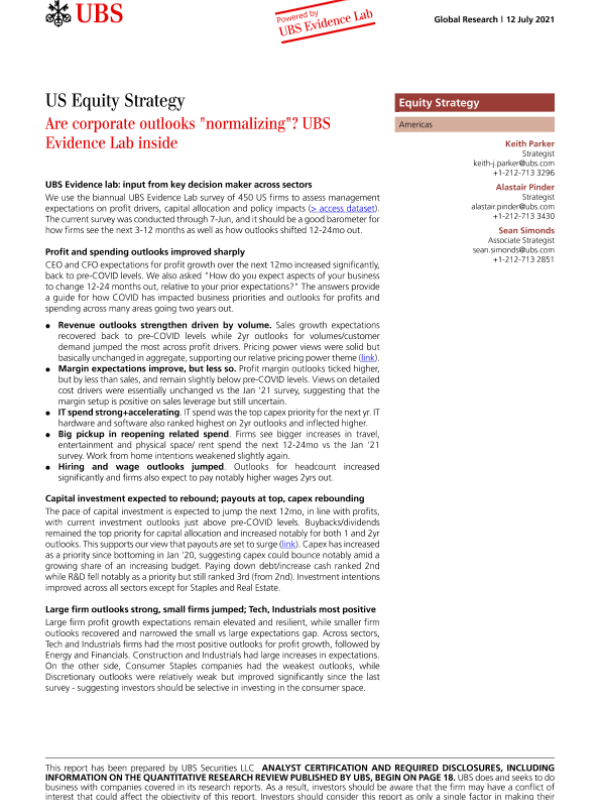 【瑞银(UBS)】【20210712】瑞银-美股投资策略-企业前景是否正在“正常化”?-22页 行业研究