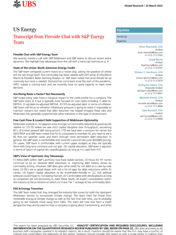 【瑞银】【20220322】Fireside Chat with S&P Energy Team-29页 会议纪要