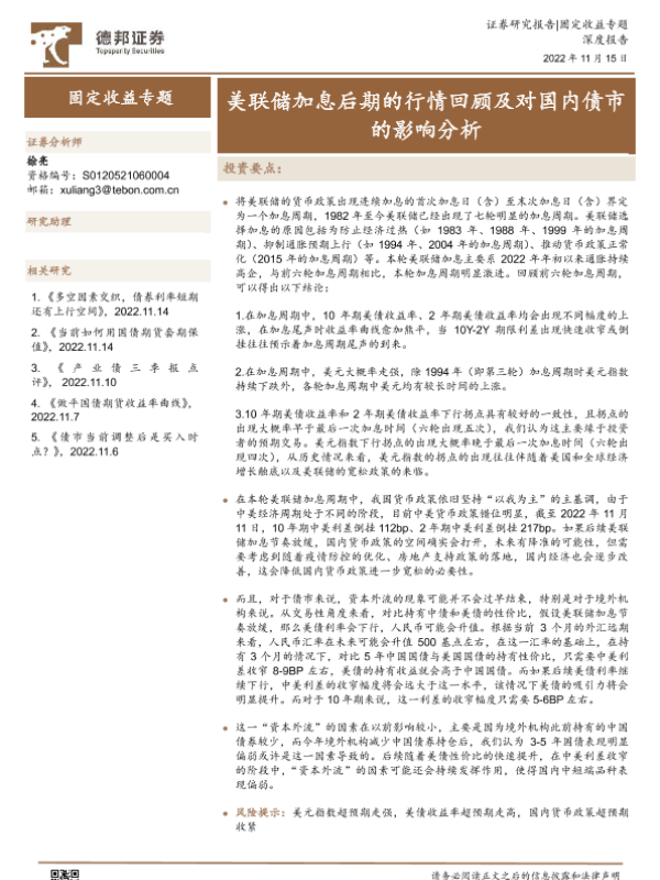 【德邦证券】【20221115】固定收益专题:美联储加息后期的行情回顾及对国内债市的影响分析-21页 行业研究