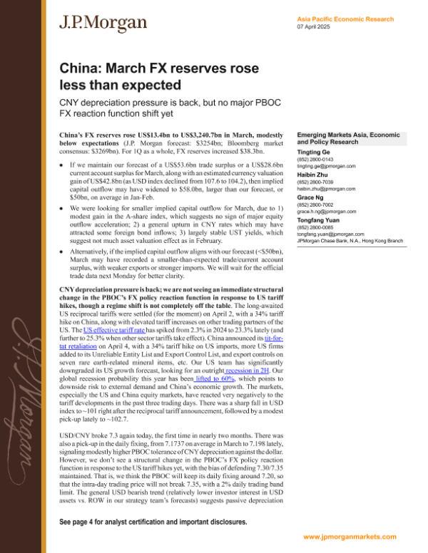 【J.P. Morgan】【20250407】China March FX reserves rose less than expected CNY depreciation pressure is back-8页 宏观策略