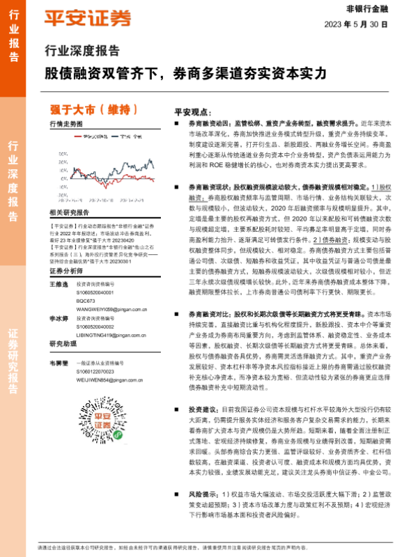 【平安证券】【20230530】2023-05-31-非银行金融行业深度报告-股债融资双管齐下-券商多渠道夯实资本实力-28页 行业研究