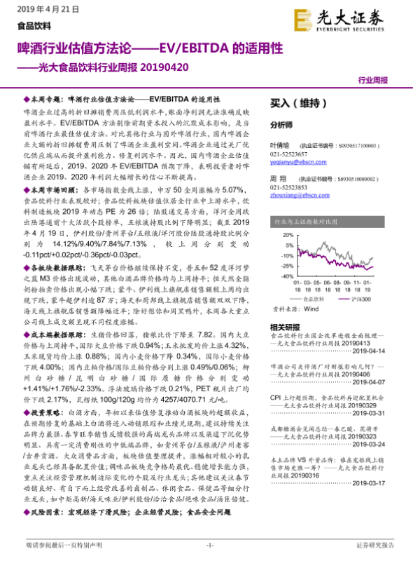 【光大证券】【20190421】光大食品饮料行业周报:啤酒行业估值方法论——EV/EBITDA的适用性-25页 行业研究