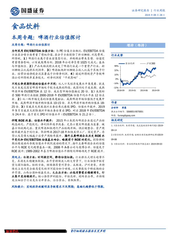 【国盛证券】【20190928】食品饮料本周专题:啤酒行业估值探讨-29页 行业研究