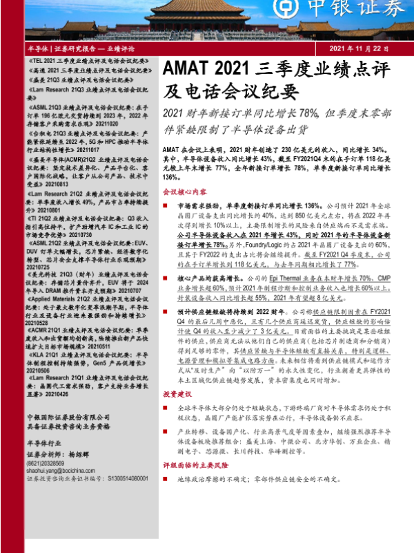 【中银证券】【20211122】AMAT2021三季度业绩点评及电话会议纪要-10页 行业研究