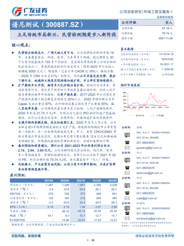 【广发证券】【20211129】谱尼测试(300887.SZ):立足传统布局新兴,民营检测翘楚步入新阶段-36页 行业研究