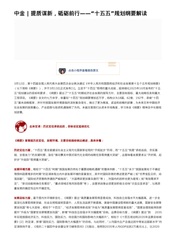 【中金公司】【202603】提质谋新,砥砺前行——“十五五”规划纲要解读-9页 证券期货研究报告
