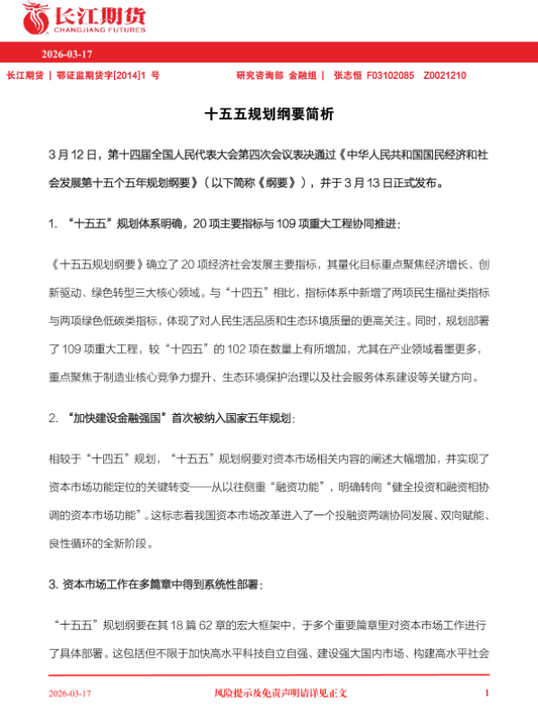【长江期货】【202603】十五五规划纲要简析-3页 证券期货研究报告