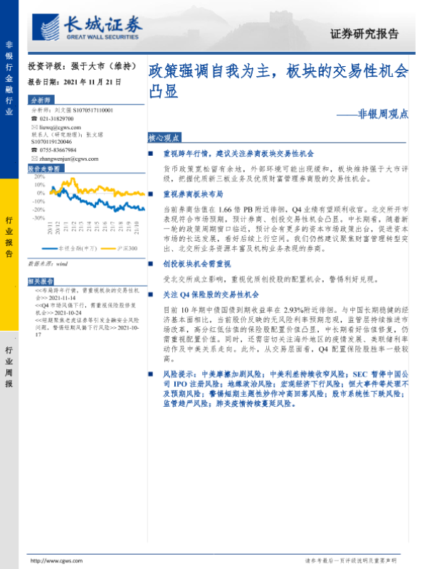 【长城证券】【20211121】非银周观点:政策强调自我为主,板块的交易性机会凸显-35页 行业研究