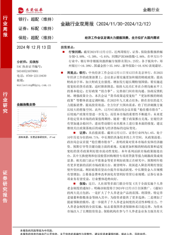【东莞证券】【20241213】金融行业双周报:经济工作会议定调大力提振消费,全方位扩大国内需求-14页 行业研究