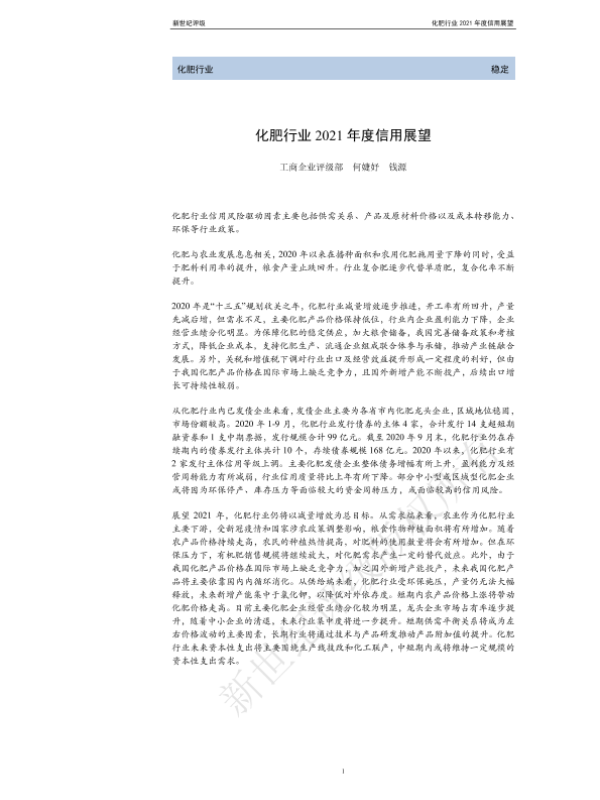【新世纪评级】【202101】化肥行业2021年度信用展望-22页 行业研究