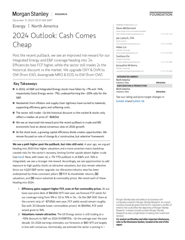 【Morgan Stanley】【2023】2024 Energy Outlook Cash Comes Cheap-52页 行业研究