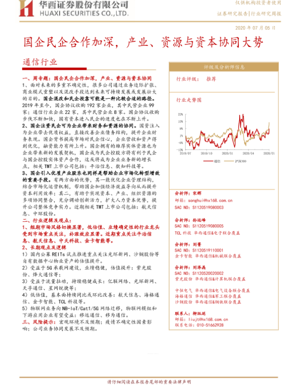 【华西证券】【20200705】通信行业研究周报:国企民企合作加深,产业、资源与资本协同大势-9页 行业研究
