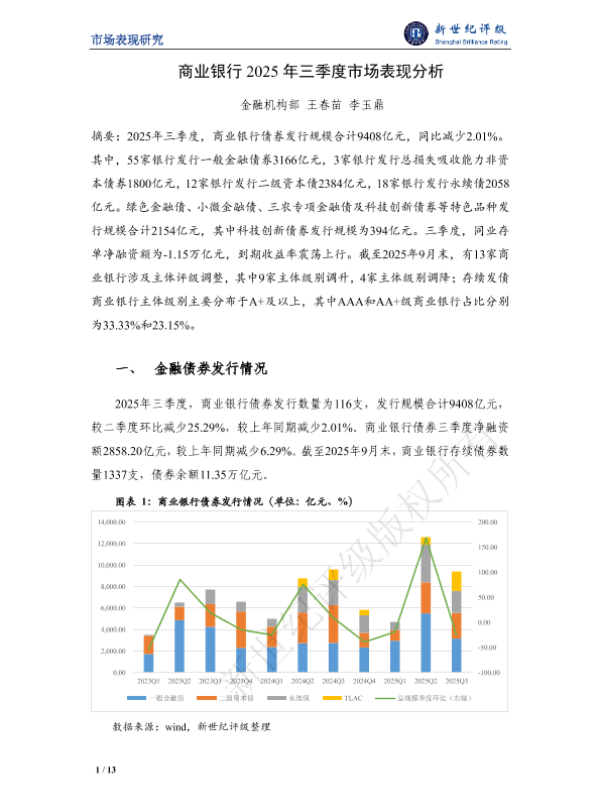 【新世纪评级】【2025】商业银行2025年三季度市场表现分析-13页 行业研究