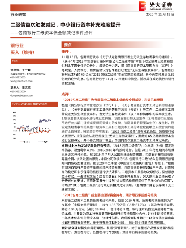 【光大证券】【20201115】二级债首次触发减记,中小银行资本补充难度提升-4页 行业研究