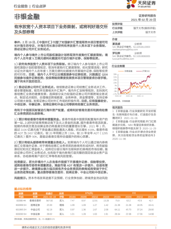 【天风证券】【20210220】有序放宽个人资本项目下业务限制,或将利好港交所及头部券商-2页 行业研究