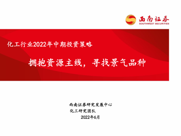 【西南证券】【202206】化工行业2022年中期投资策略:拥抱资源主线,寻找景气品种-30页 行业研究