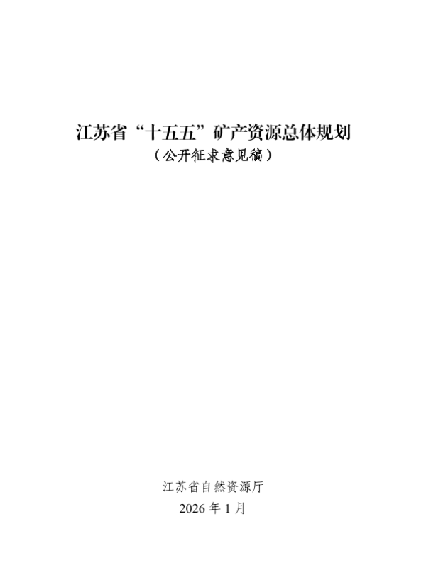 【江苏省自然资源厅】【202601】江苏省"十五五"矿产资源总体规划(公开征求意见稿)-28页 政策文件