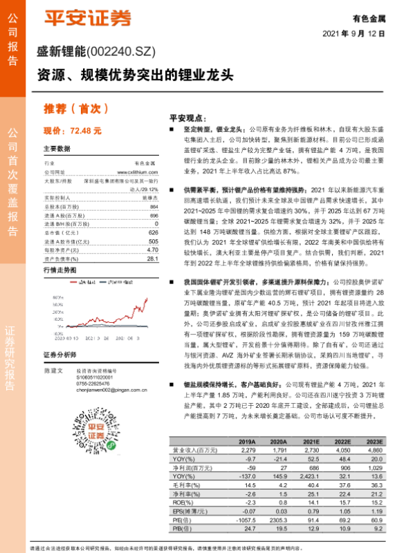 【平安证券】【20210912】盛新锂能-资源、规模优势突出的锂业龙头-25页 行业研究