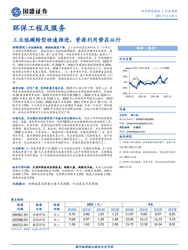 【国盛证券】【20211205】环保工程及服务行业周报:工业低碳转型快速推进,资源利用势在必行-14页 行业研究