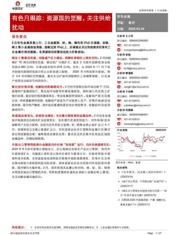 【五矿证券】【20250324】20250324-五矿证券-有色月跟踪:资源国的觉醒,关注供给扰动-27页 行业研究