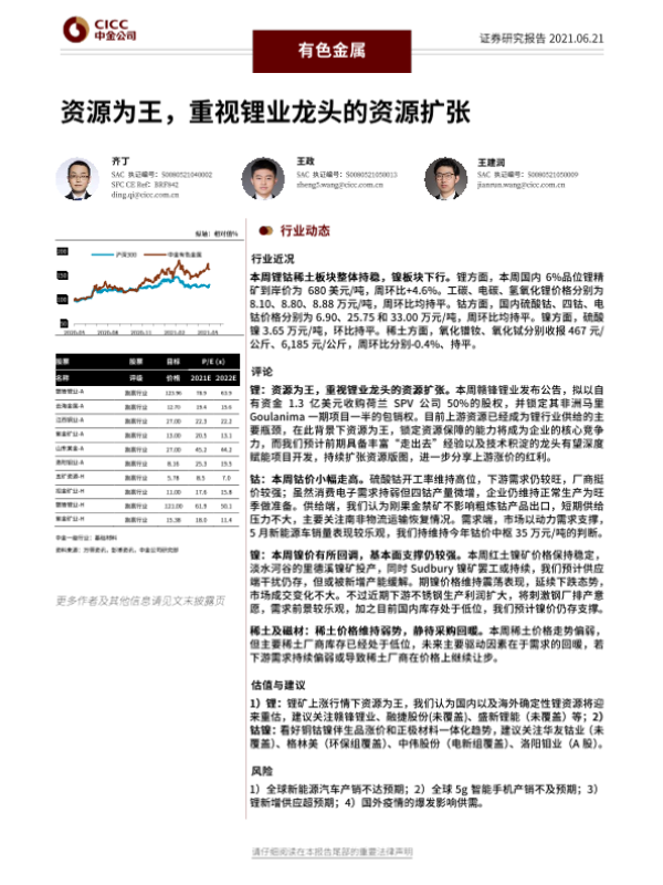 【中金公司】【20210621】有色金属行业:资源为王,重视锂业龙头的资源扩张-30页 行业研究