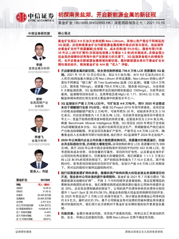 【中信证券】【20211010】20211010-中信证券-紫金矿业-601899.SH-深度跟踪报告之七:初探南美盐湖,开启新能源金属的新征程-20页 行业研究