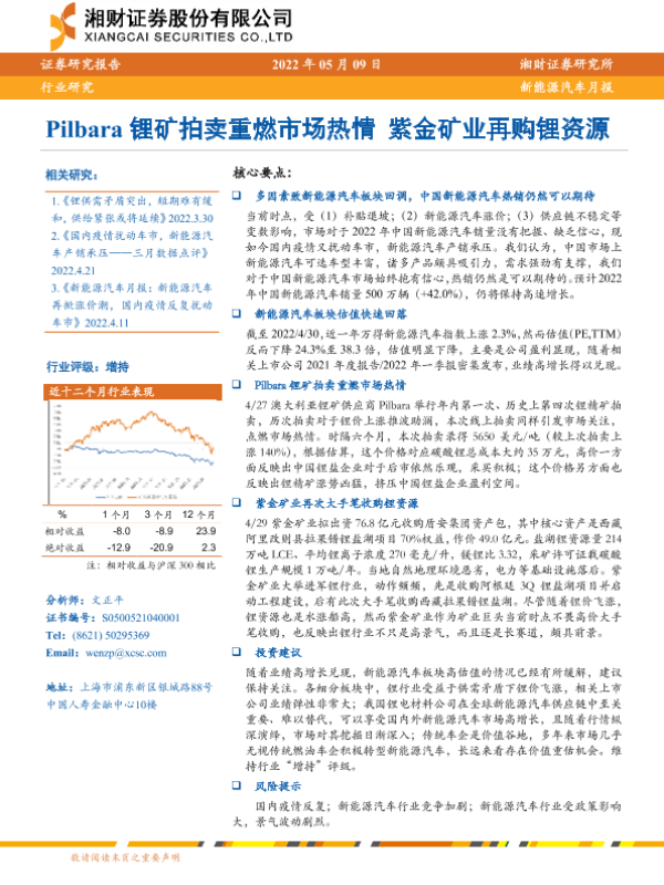 【湘财证券】【20220509】Pilbara锂矿拍卖重燃市场热情 紫金矿业再购锂资源-14页 行业研究